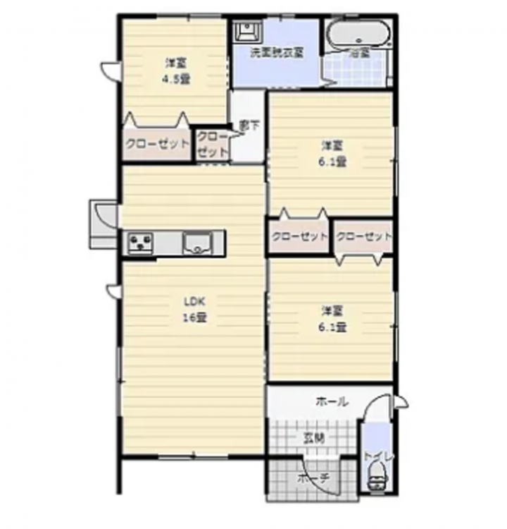 広々16帖LDK+洋室3部屋の3LDK!